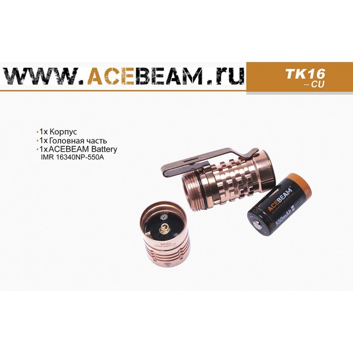 | Комплектация | оригинальный аккумулятор IMR16340 550 мАч;съемная металлическая клипса;накладка на кнопку;уплотнительные кольца;инструкция;гарантийный талон |