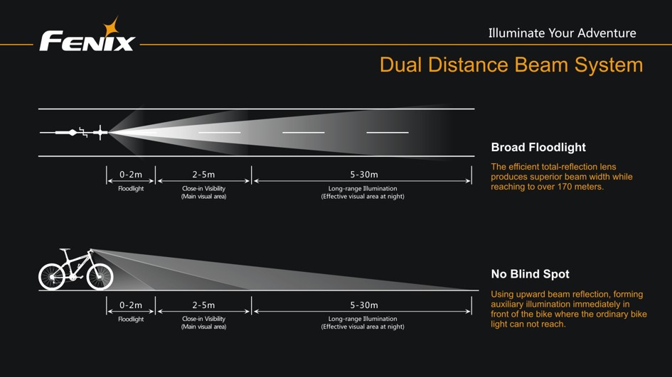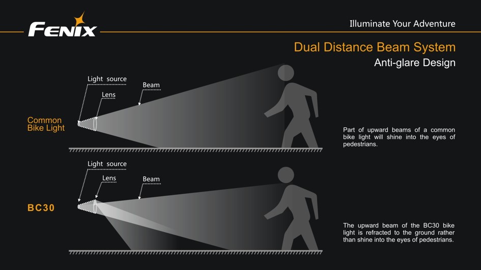 Fenix BC30 - велофонарь с невероятно высокой яркостью - 1800 люмен (как фара автомобиля). В максимальном режиме яркости Fenix BC30 светит на дистанцию до 146 метров по ANSI стандарту. Применена технология двойной фокусировки луча - оптимально распределяется свет и не слепит прохожих. В велофаре Fenix BC30 можно использовать как 2 аккумуляторв 18650, так и батарейки CR123 (4 штуки). Режимы удобно переключаются кнопкой, расположенной сверху на фонаре. Корпус выполнен полностью из авиационного алюминия что делает его не только прочным и легким, но и обеспечиает хороший теплоотвод даже если велофара Fenix BC30 не обдувается при езде. В режиме 1800 люмен данный фонарь работает кратковременно, после чего яркость автоматически снижается. Остальные режимы стабилизированы.