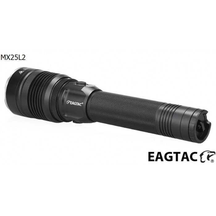 Eagletac MX25L2 – перезаряжаемый многофункциональный тактический фонарь, разработанный на базе высокоэффективного светодиода Luminus SST-90 P с максимальной мощностью светового потока в 2850 люменов. Фонарь оснащен глубоким гладким рефлектором, обеспечивающим распространение узкосфокусированного (7 градусов) луча света на дистанцию до 479 метров. при мягкой боковой засветке с углом расхождения в 58 градусов. В качестве элементов питания в фонаре используется два перезаряжаемых аккумулятора типа 32650, а их зарядка может выполняться непосредственно внутри корпуса светового прибора от сети или автомобильного адаптера.