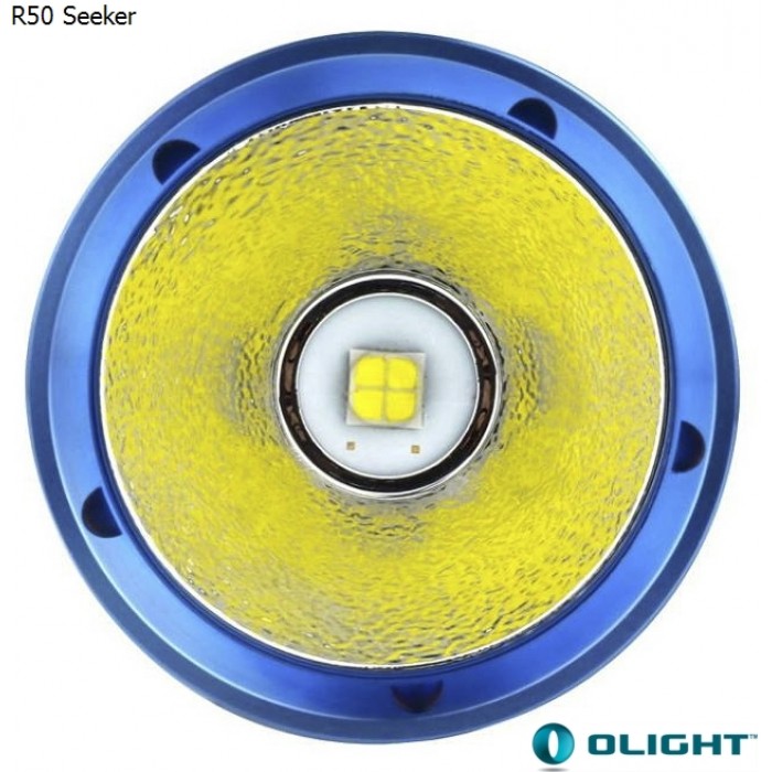 - Olight R50 Seeker можно использовать в качестве свечи благодаря плоской торцевой части и специального рассеивателя